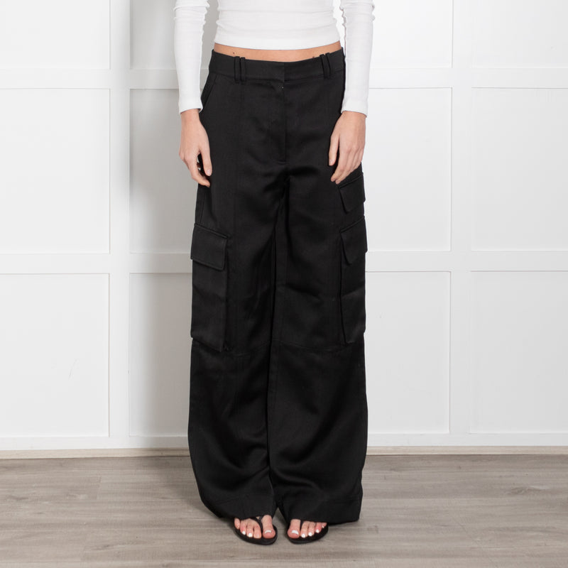 Me + Em Black Satin Wide Leg Trousers