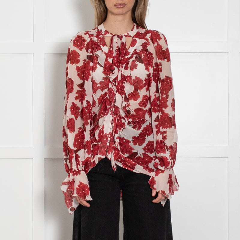 The Kooples Black Red Floral Silk Blend Blouse