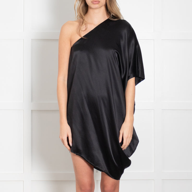 Halston Heritage Black One Shoulder Silk Mini Dress