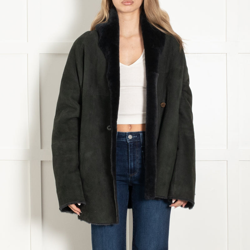 Unbranded Black/Green Reversible Shearling Coat