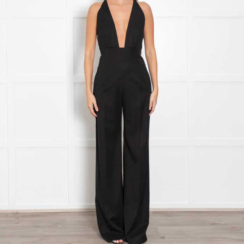 LA Mania Lace Back Black Flared Jumpsuit