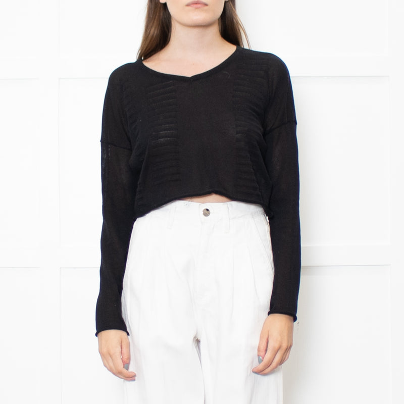 Sarah Pacini Black Knitted Long Sleeve Crop Top