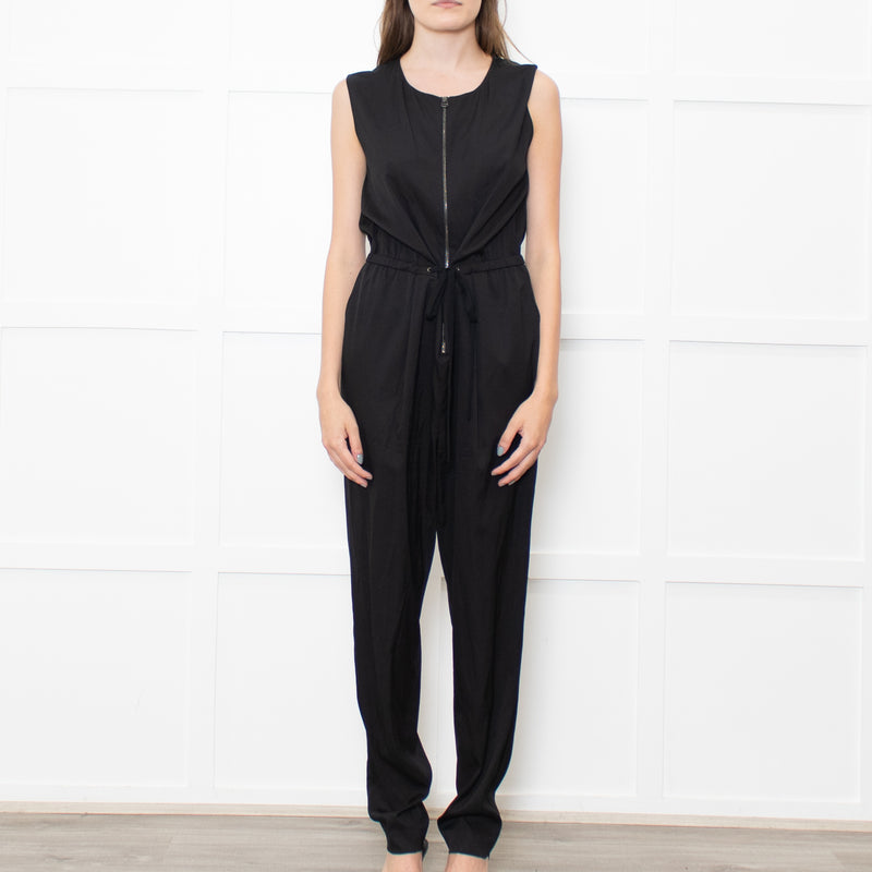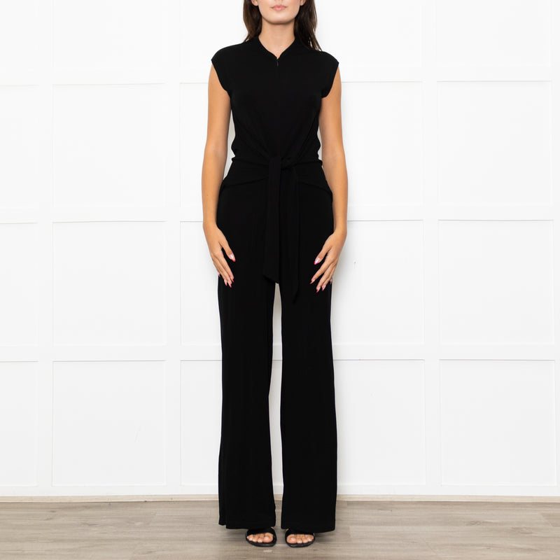 Me+Em Black Jersey Sleeveless Tie Zip Front Jumpsuit