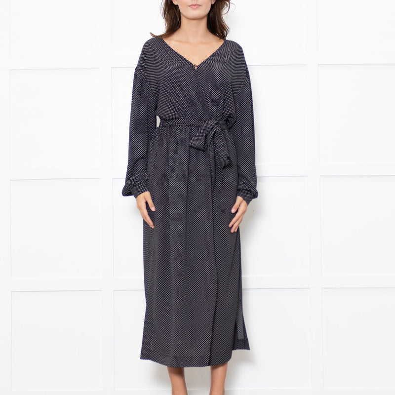 Nanushka Oasis Black Georgette Polka Dot Belted Midi Dress