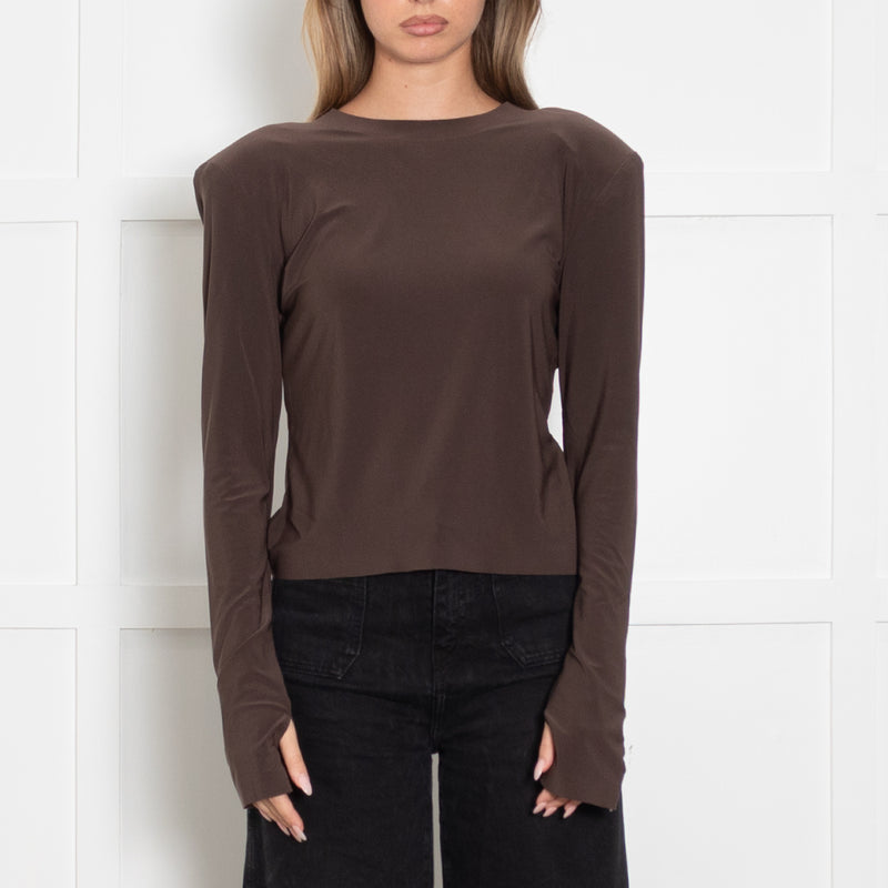 Machka Dark Tan Shirt With Crystal Shoulder Detail