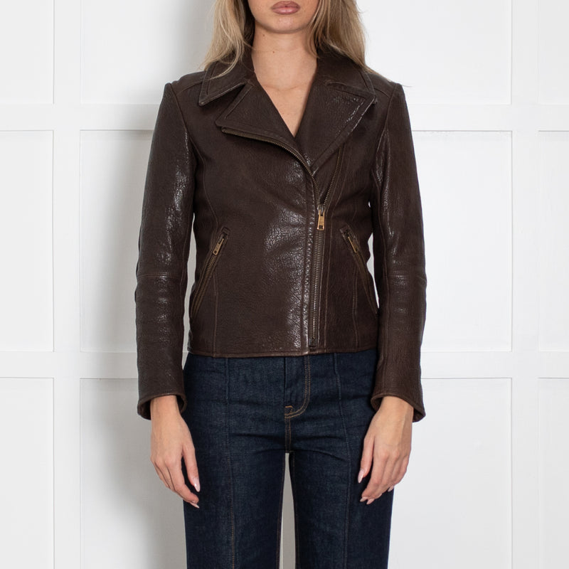 Holland Cooper Tweed Coat With Leather Sleeves, Collar & Pockets