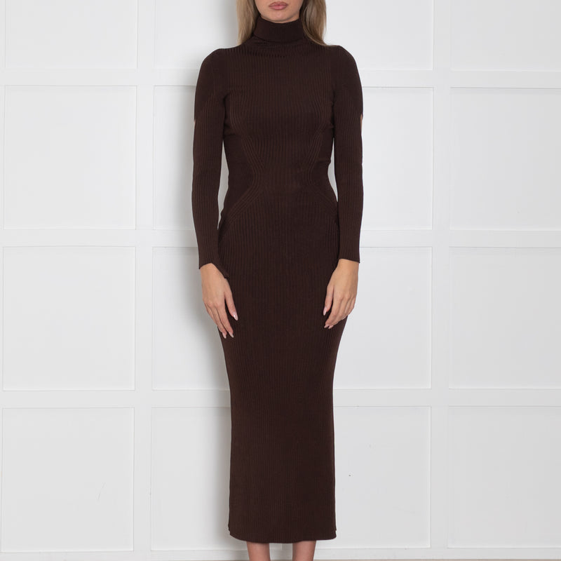 GAeLLE PARIS Brown Dress With Elasticated Waist & Belt