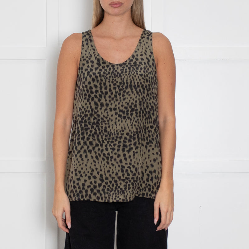 Chloe Khaki Black Animal Print Sleeveless Silk Top