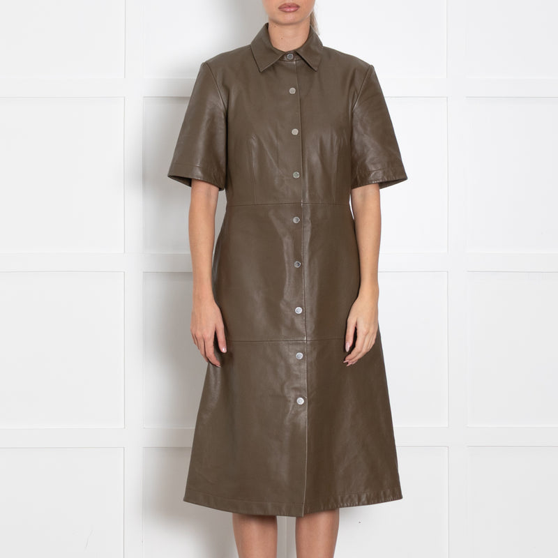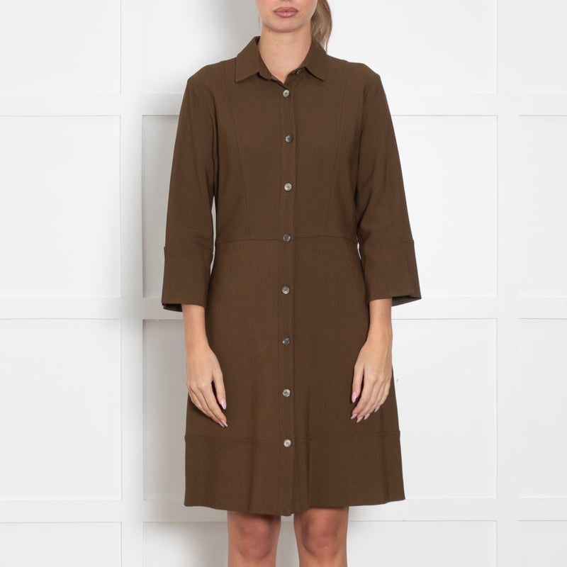 Antonelli Khaki 3/4 Sleeve Buttoned Up Dress