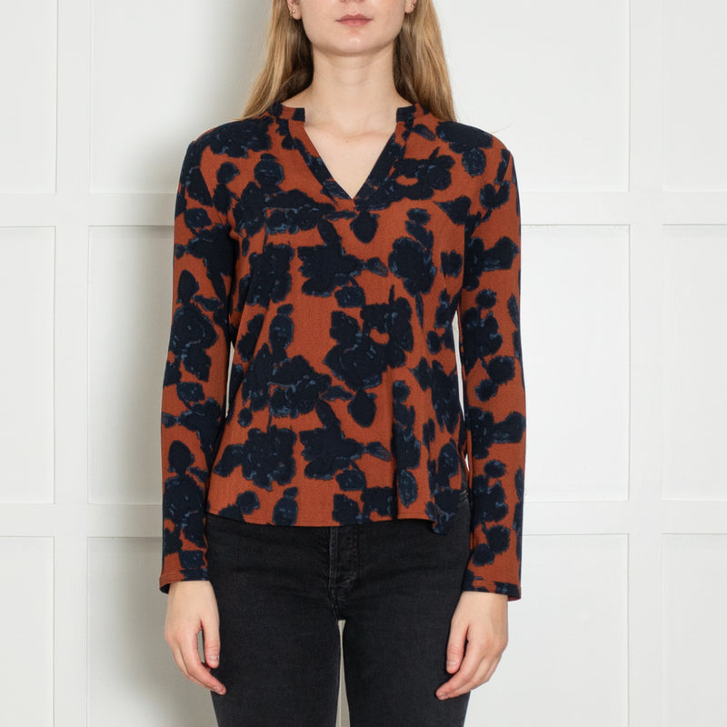 Essentiel Antwerp Burnt Orange Navy Flower Print Blouse
