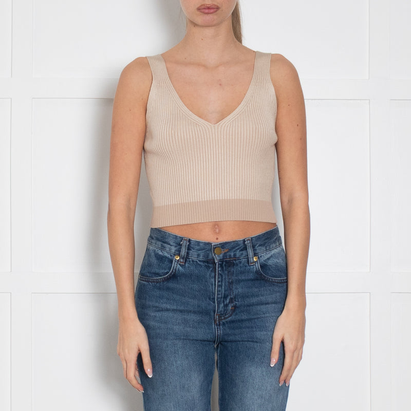Me+Em Beige Sleeveless Cropped Knitted Top
