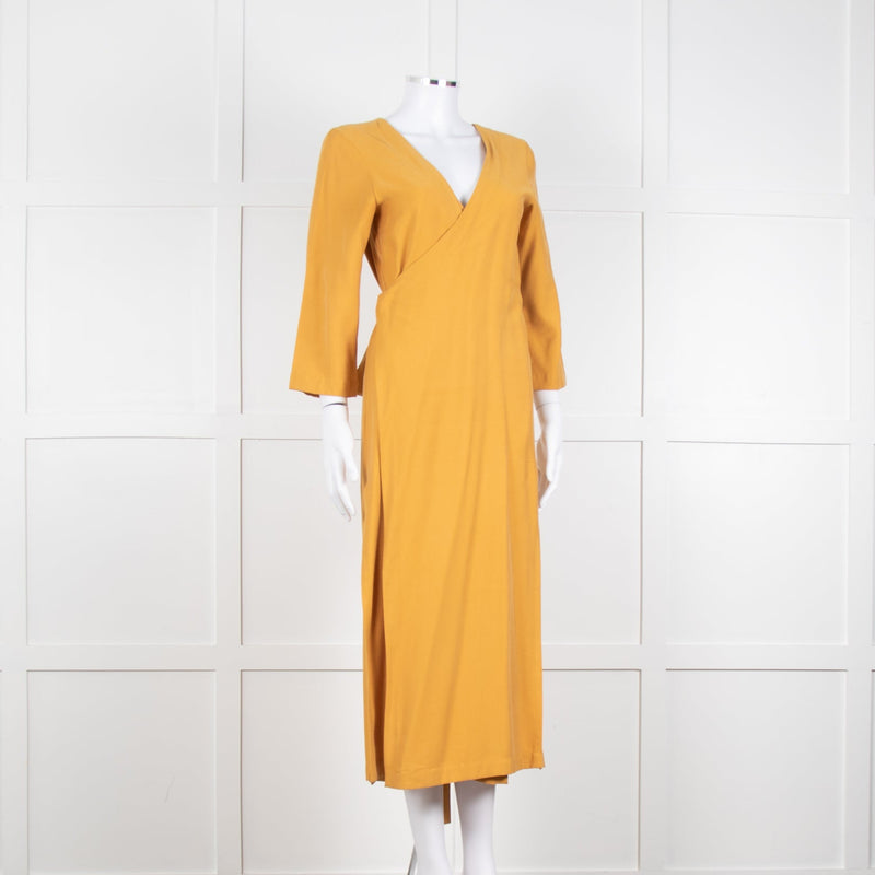 Haight Mustard Yellow Wrap Dress with 3/4 Sleeves