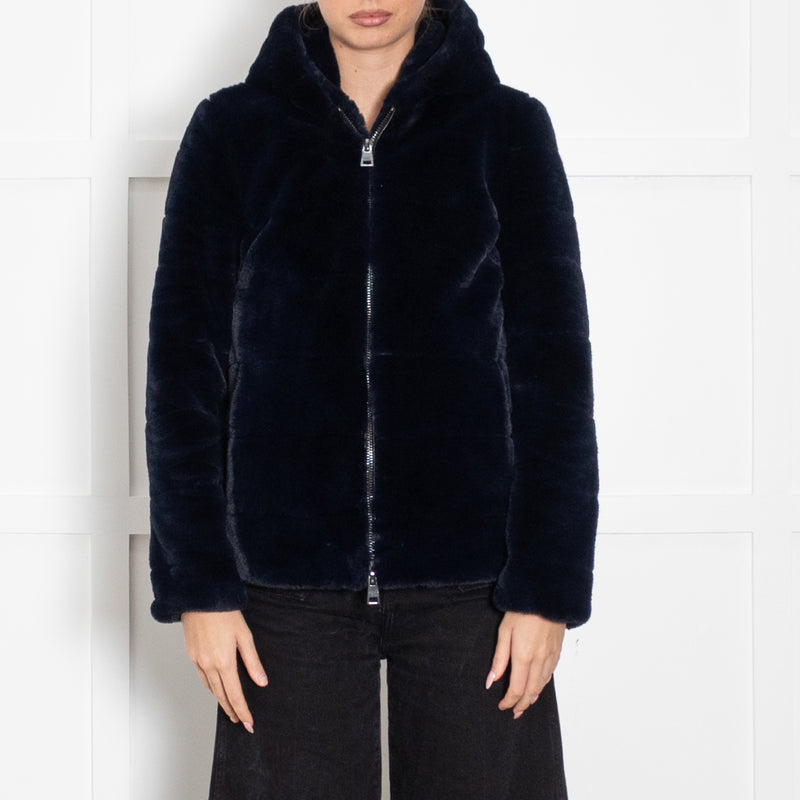 Oakwood Navy Blue Faux Fur Hooded Jacket