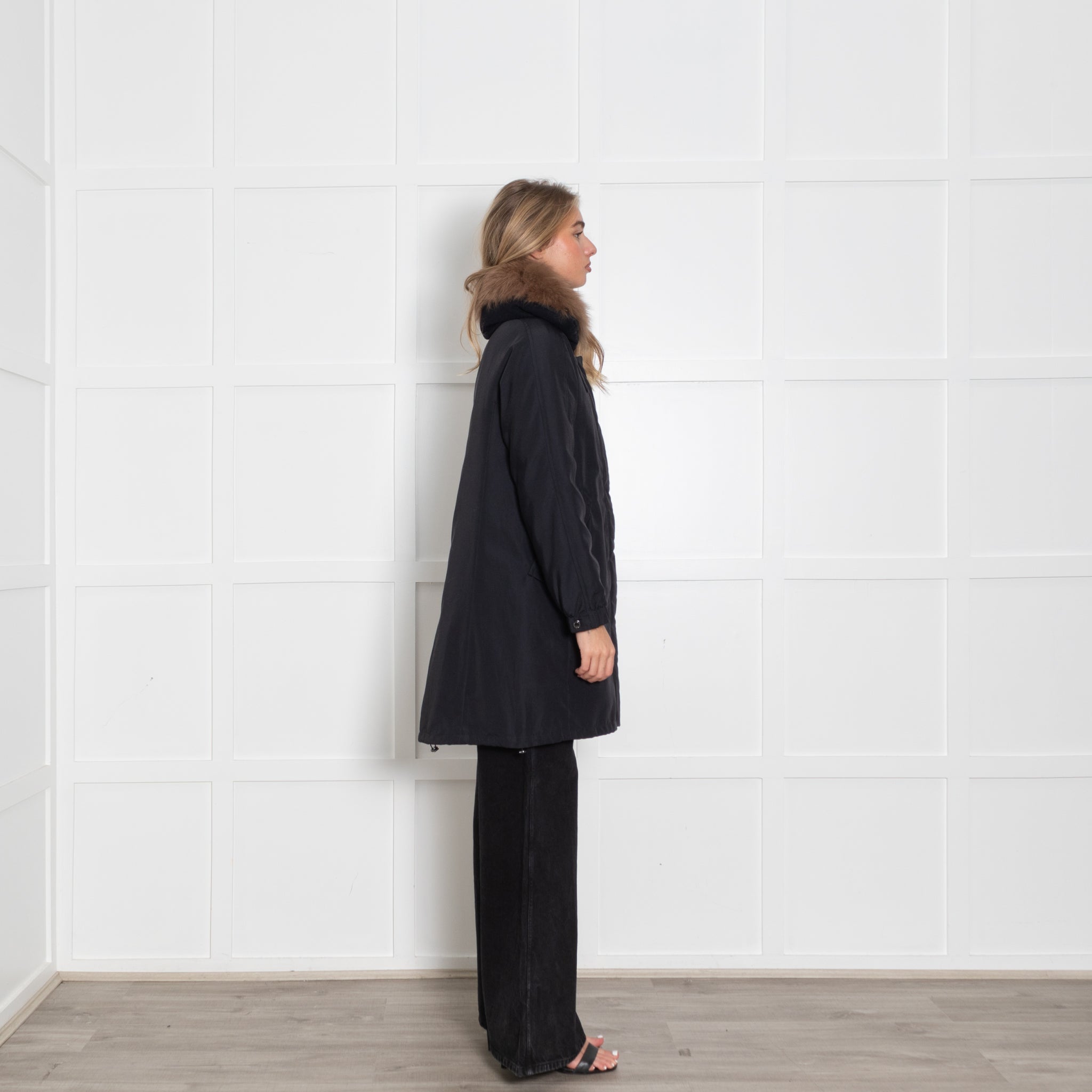 Weekend Max Mara Navy Blue Brown Faux Fur Puffer Coat