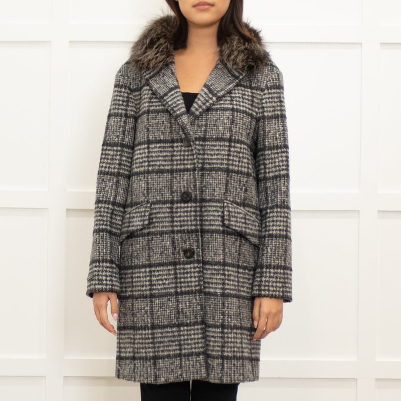 Peserico Grey Check Fur Collar Short Coat