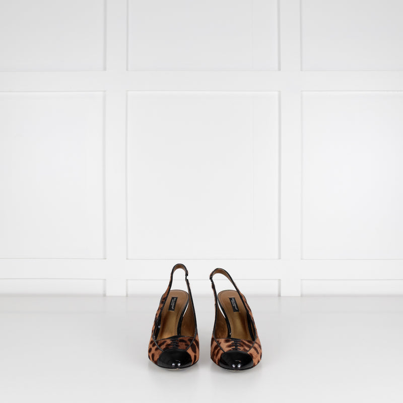 Dolce & Gabbana Brown Animal Print Ponyskin Slingbacks