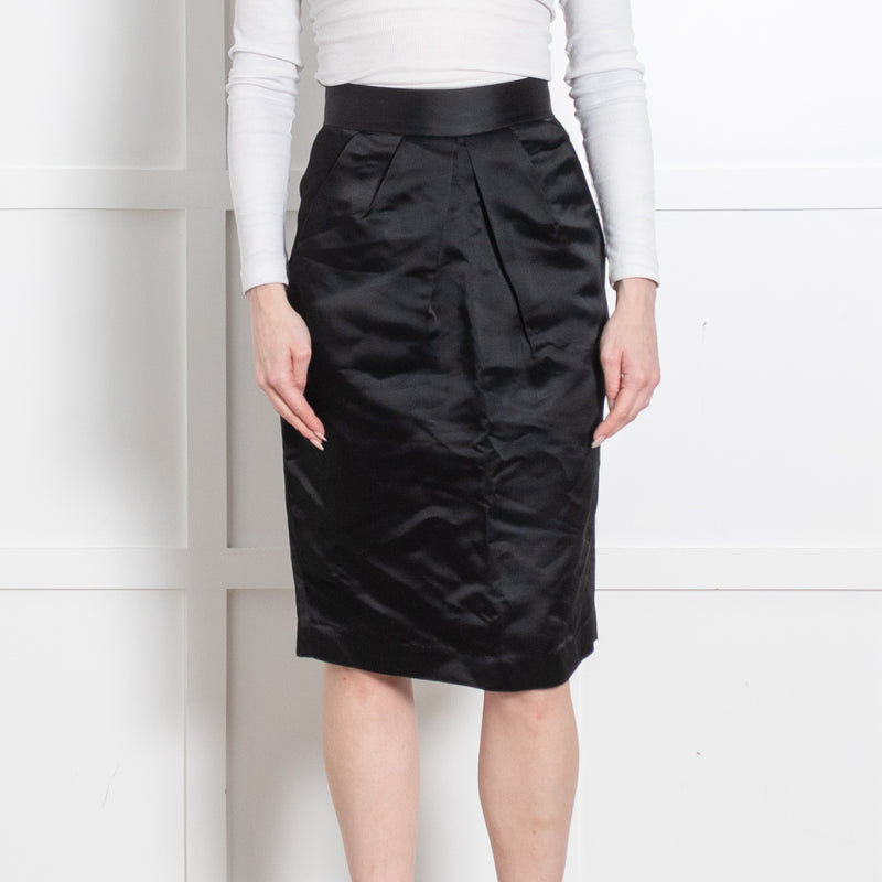 Dolce & Gabbana Black Satin Finish Front Pleat Pencil Skirt