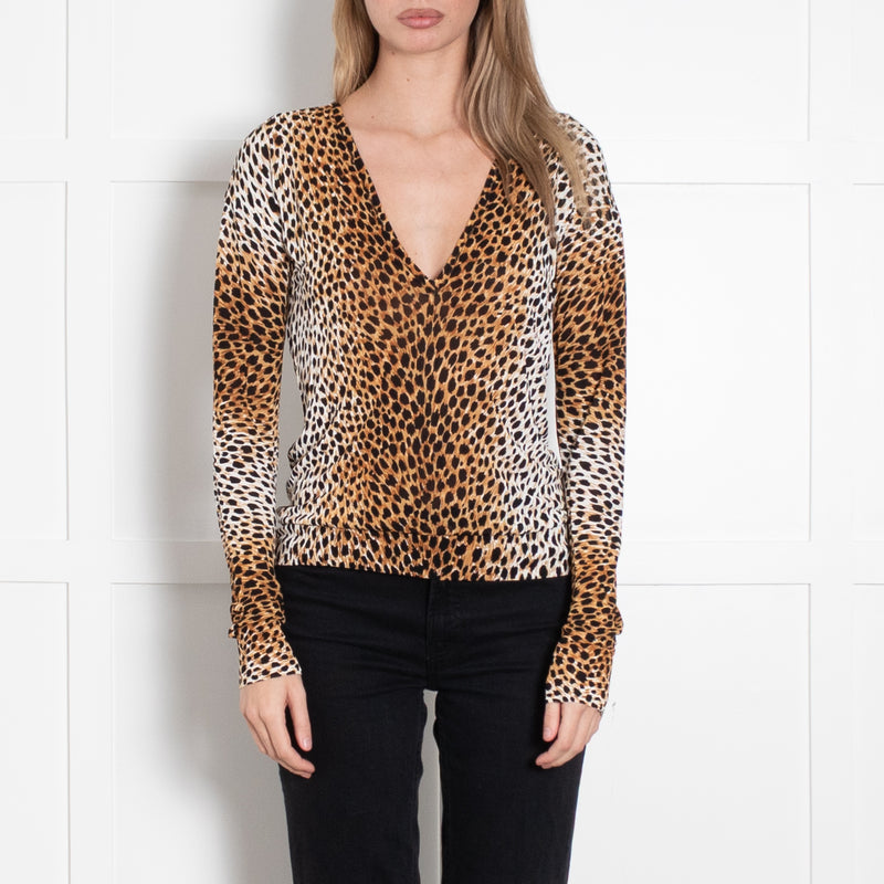 Dolce & Gabbana Brown Leopard Print V-Neck Long Sleeve Top