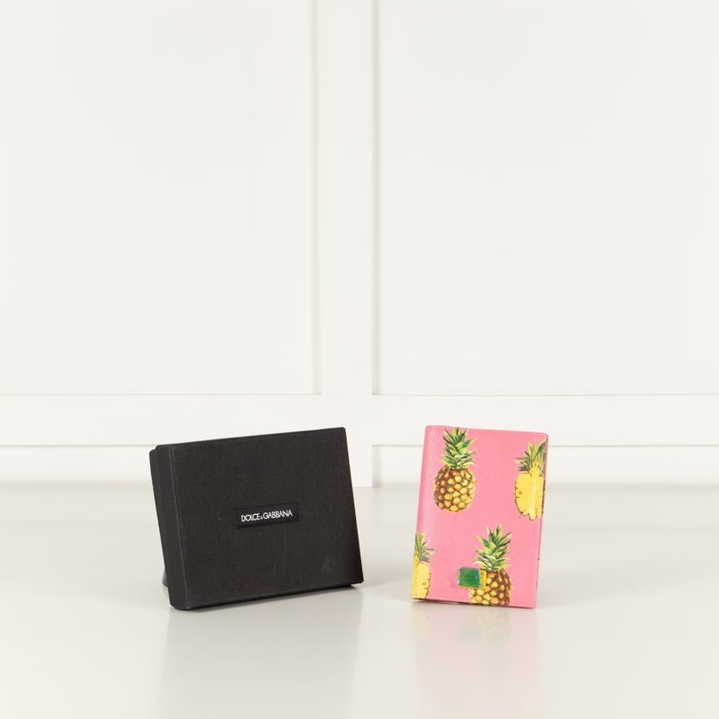Dolce & Gabbana Pink Pineapple Leather Passport Holder