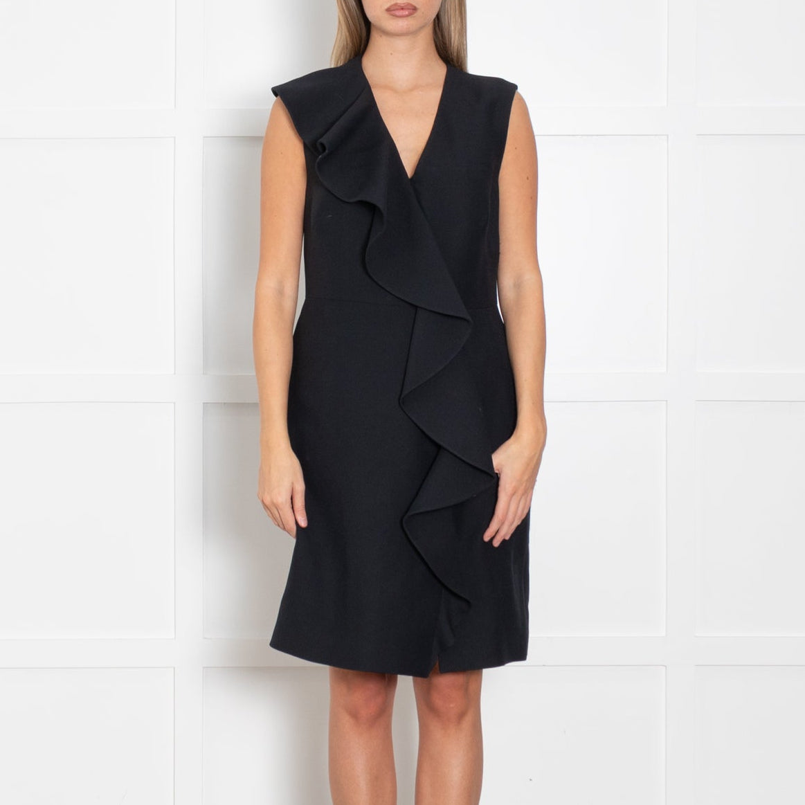 Emilio Pucci black ruffled sleeveless dress with back zip fastening.