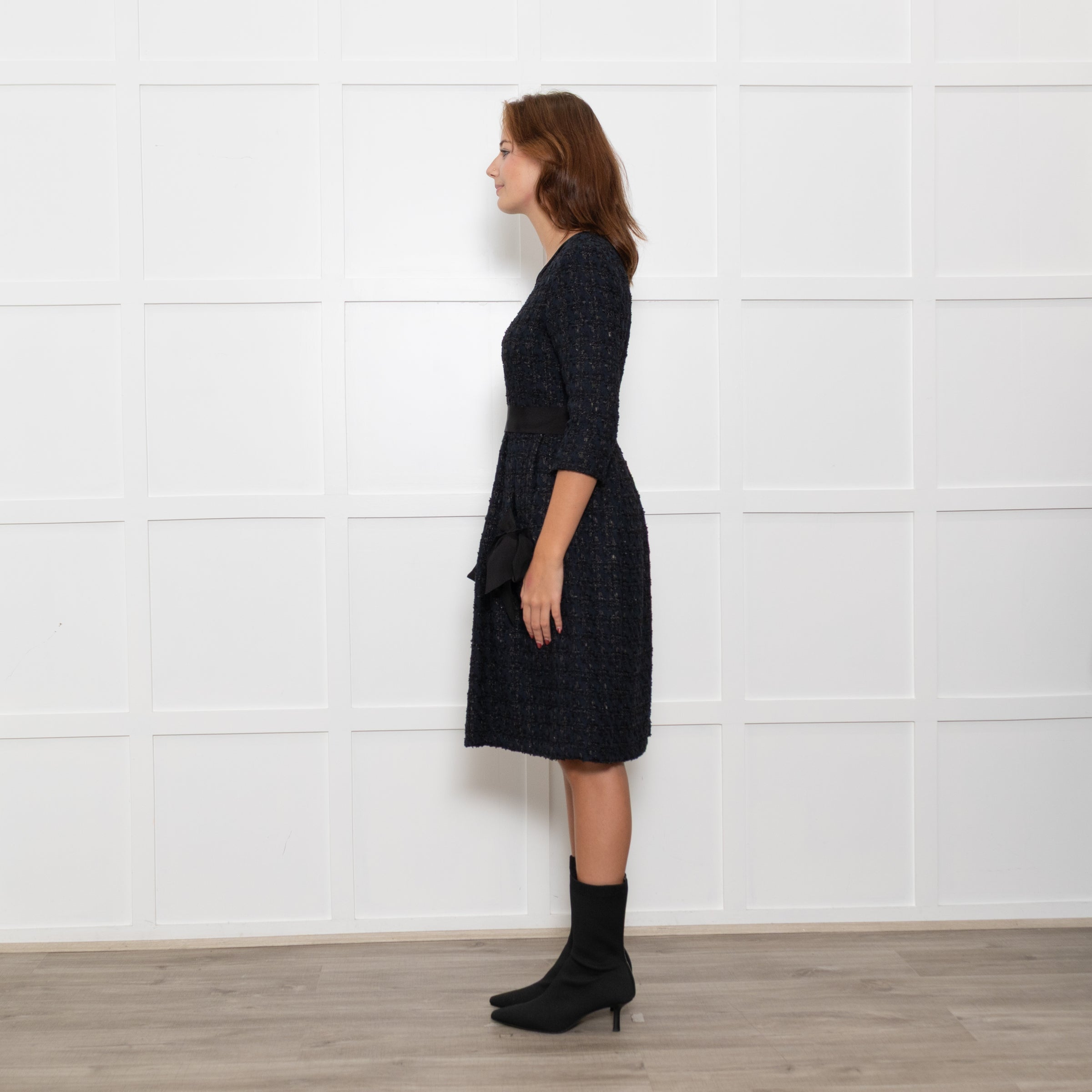 Moloh Midnight Blue Boucle Knit Dress with Grosgrain Ribbon Trims