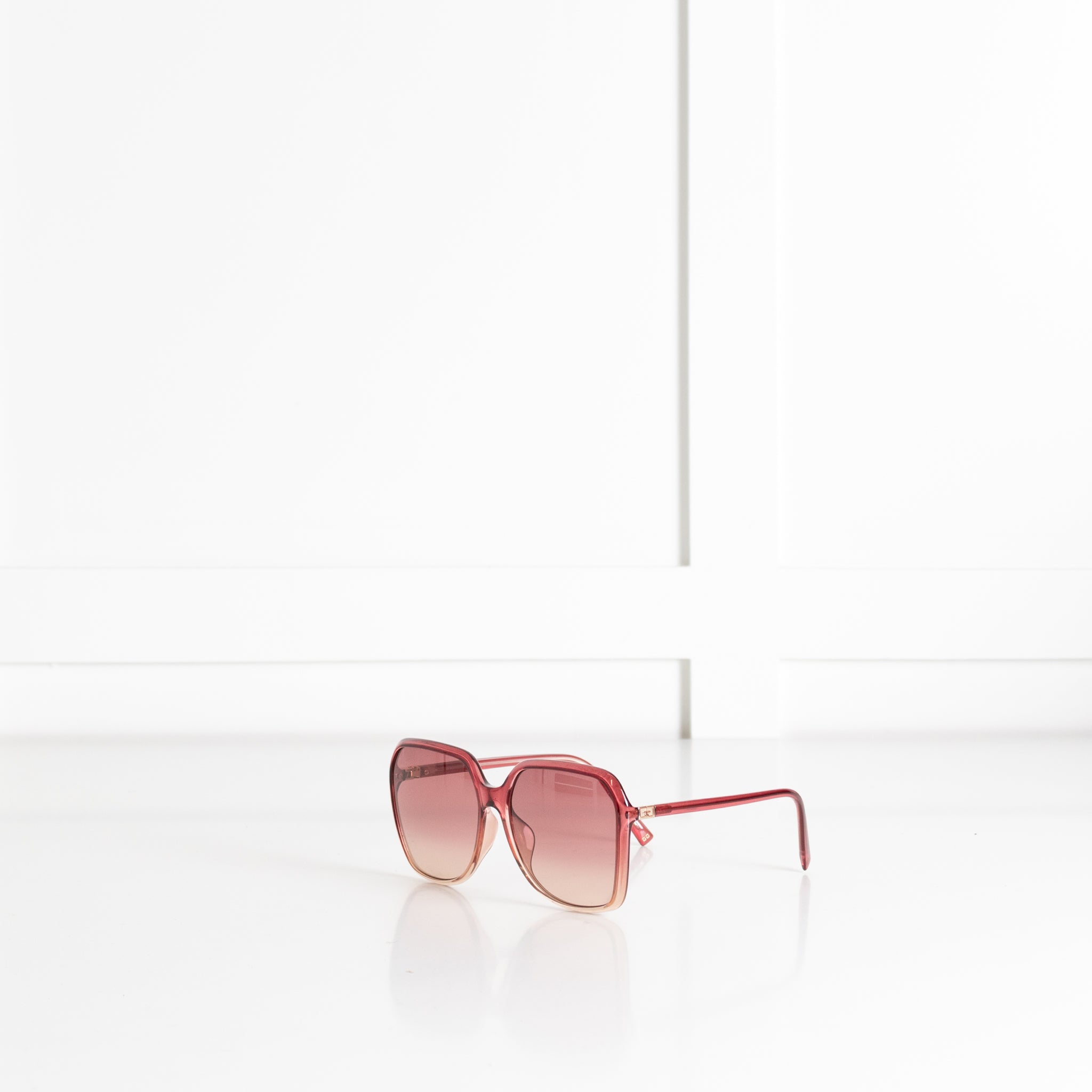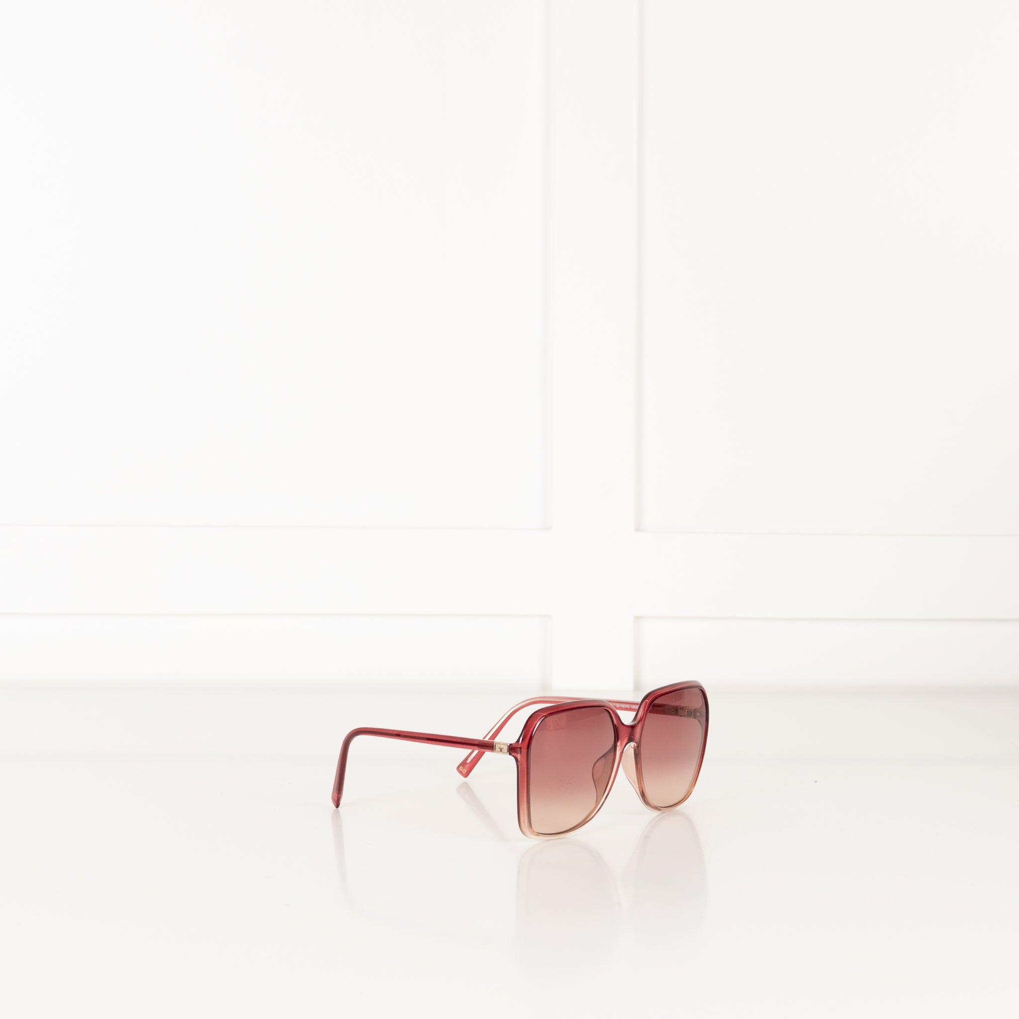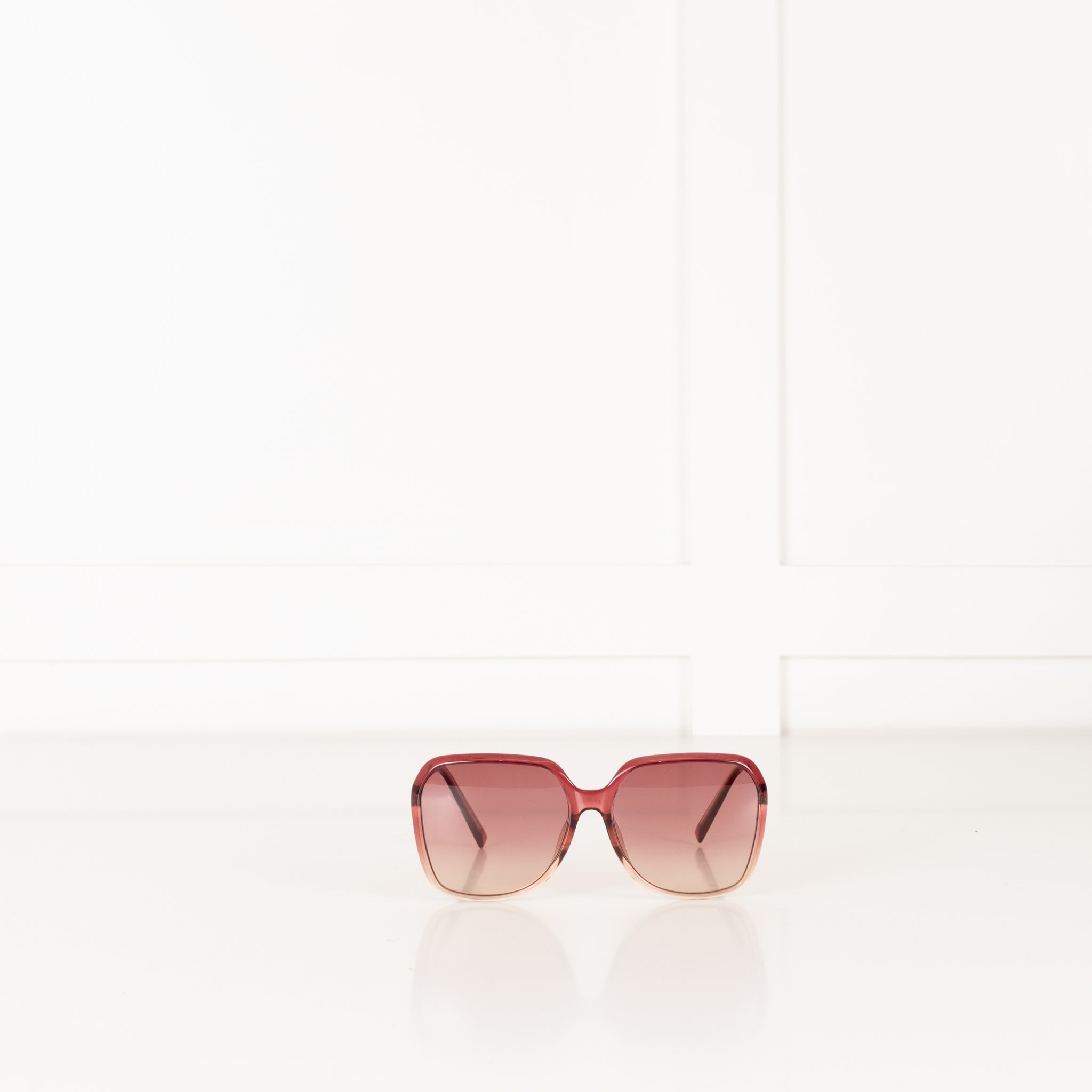 Givenchy red ombre sunglasses, featuring an oversized deisgn with the 'G' Givenchy logo on the side of each frame. These sunglasses are accompanied by the original box.