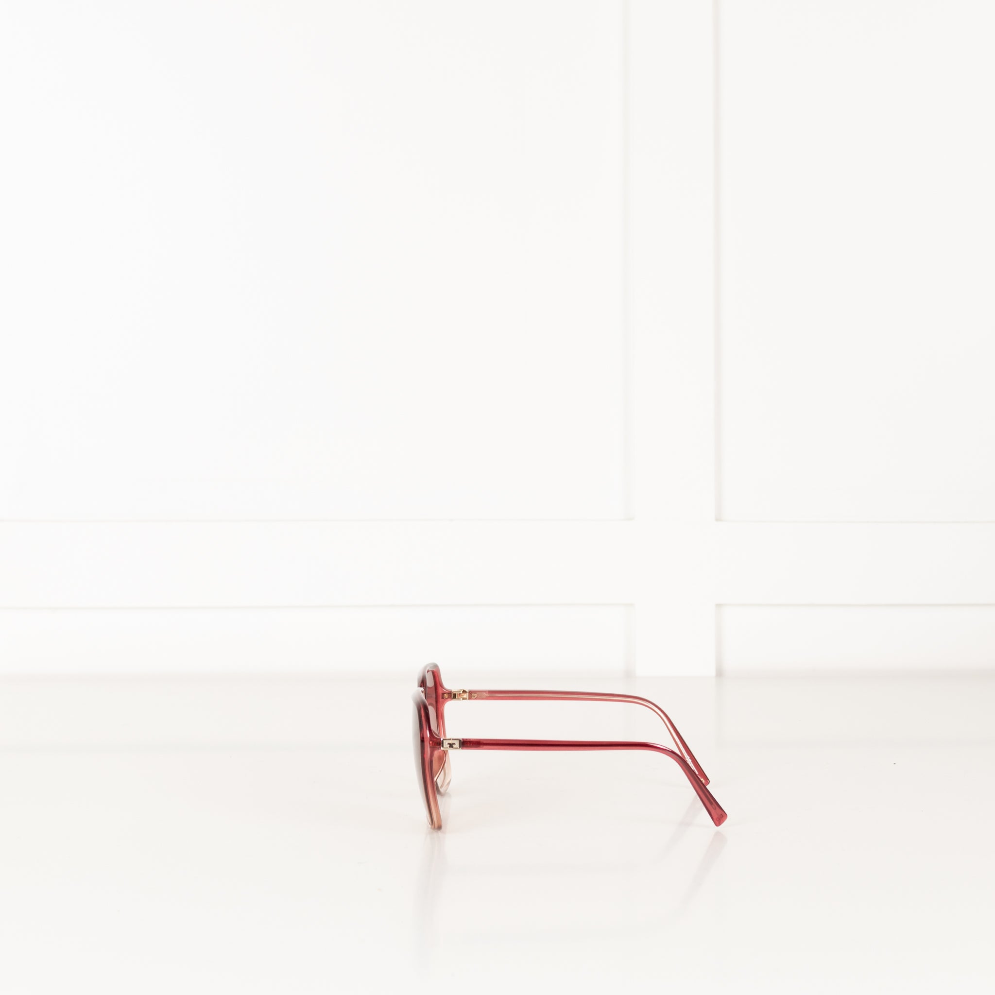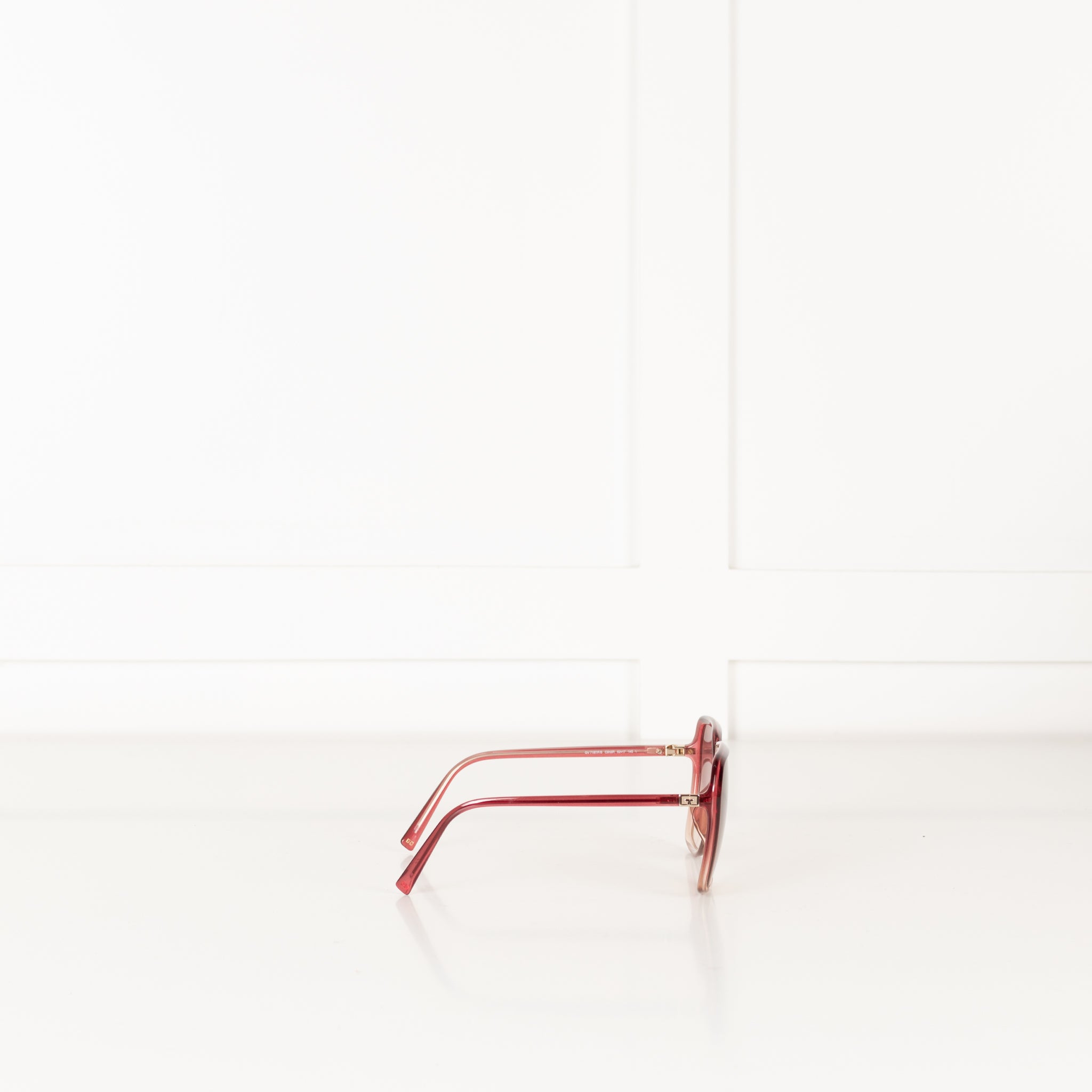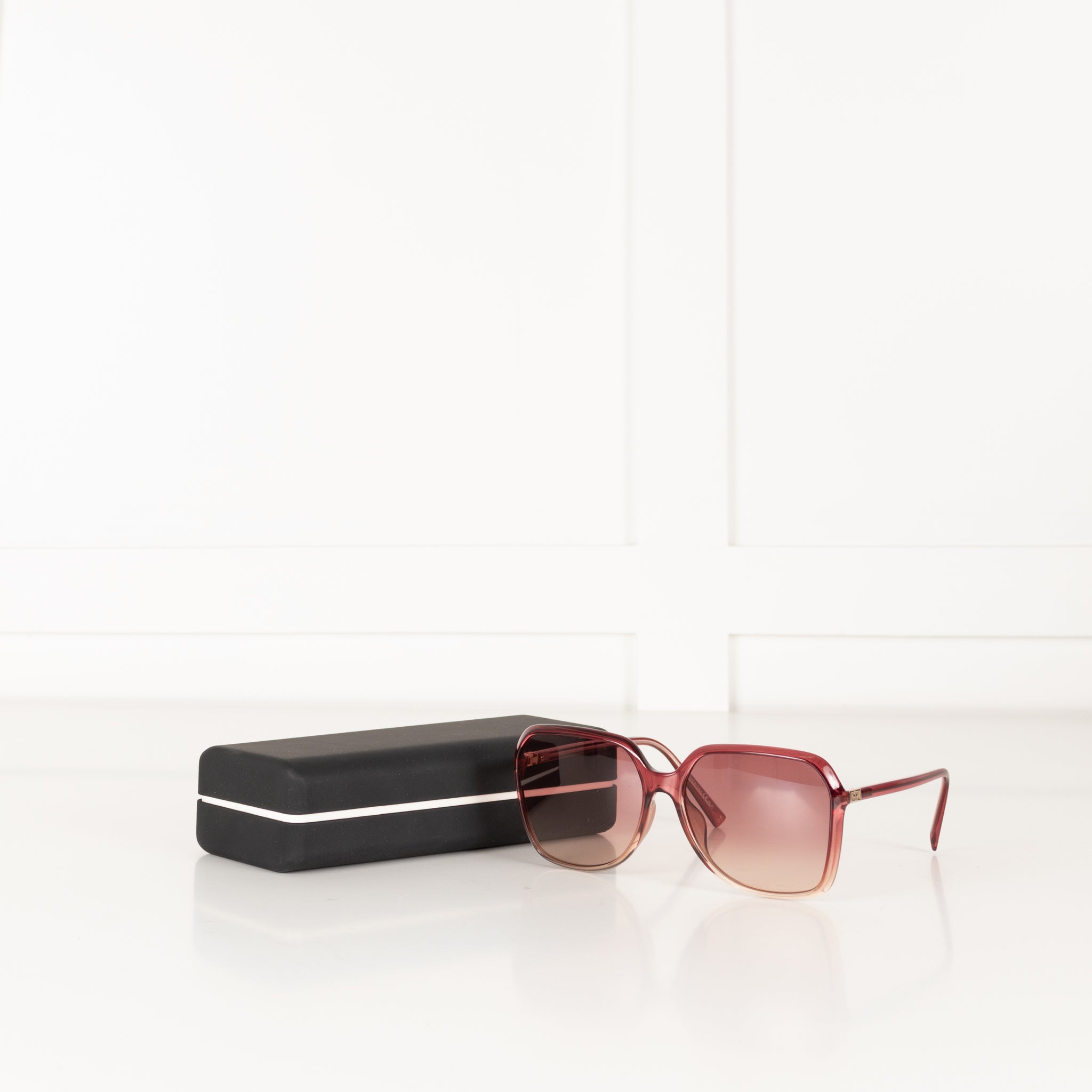 Givenchy red ombre sunglasses, featuring an oversized deisgn with the 'G' Givenchy logo on the side of each frame. These sunglasses are accompanied by the original box.