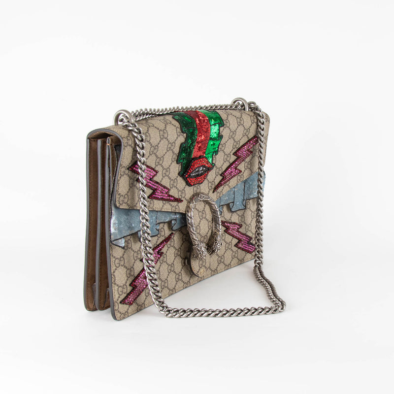 Gucci Beige Dionysus GG Supreme Monogram Embellished Medium Handbag