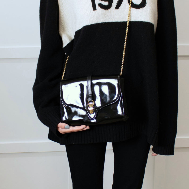 Gucci Black Patent Leather Crossbody Vintage Bag