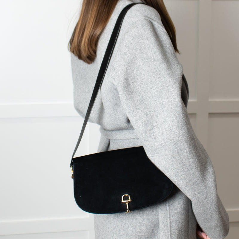 Gucci Black Suede Horsebit Vintage Shoulder Bag