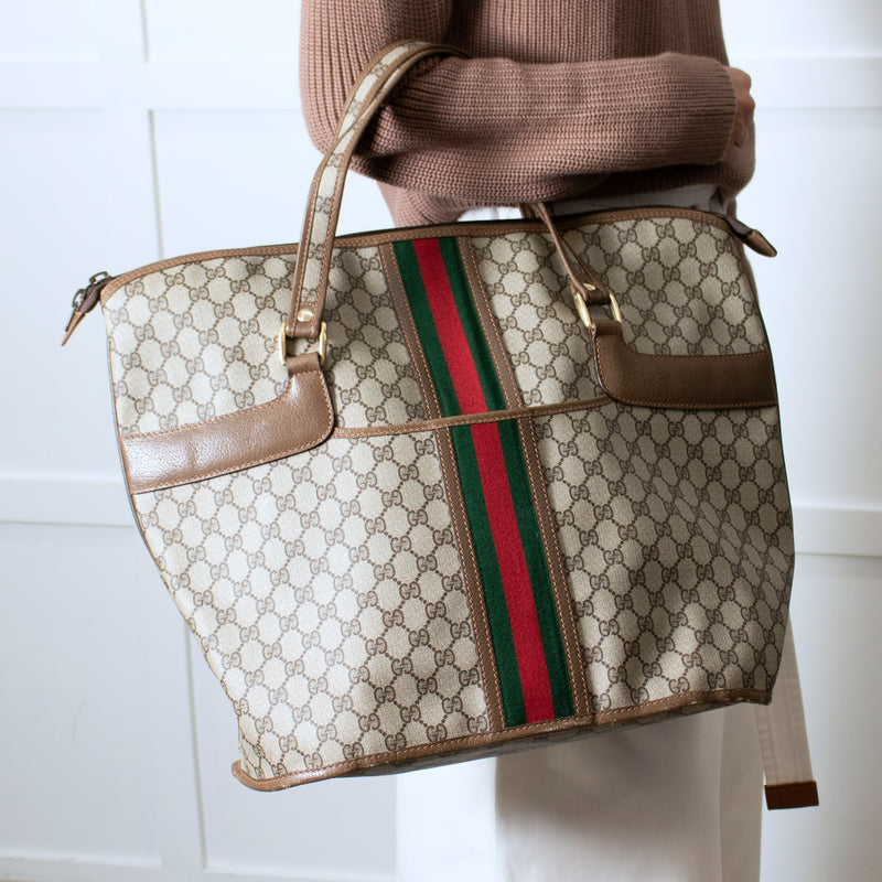 Gucci Beige Monogram Canvas Vintage Large Boston Travel Bag