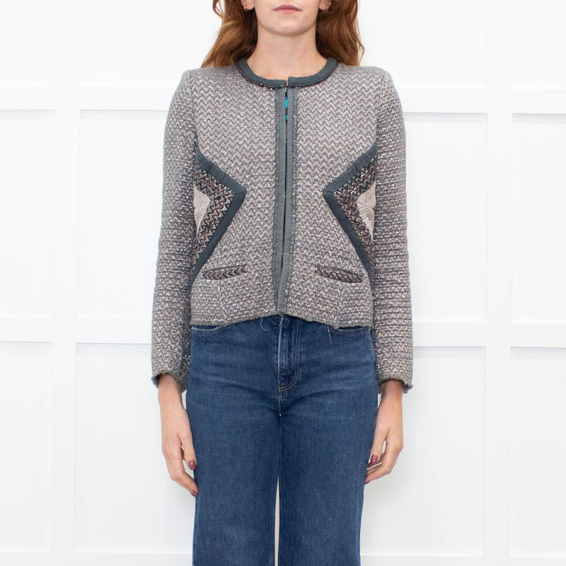 Isabel Marant Grey Metallic Zig Zag Short Jacket