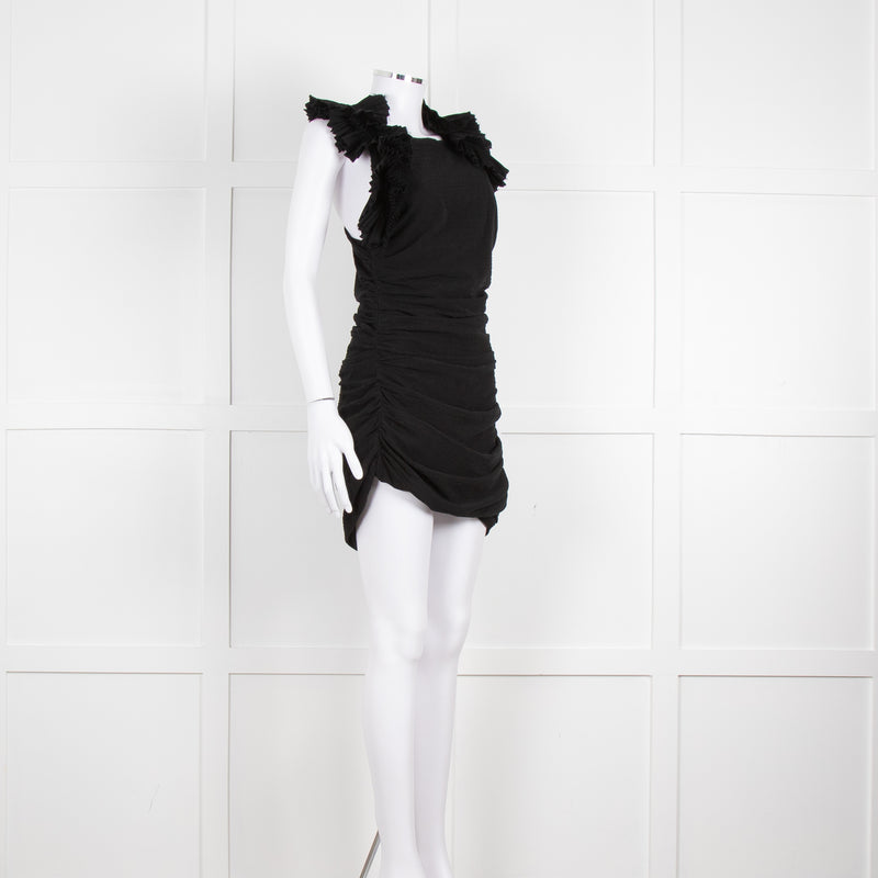 Isabel Marant Black Pleated Ruffle Straps Ruched Dress