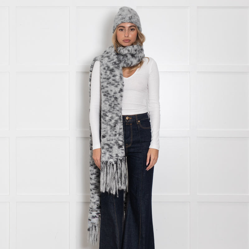Isabel Marant Grey & Black Fleck Chunky Scarf with Hat