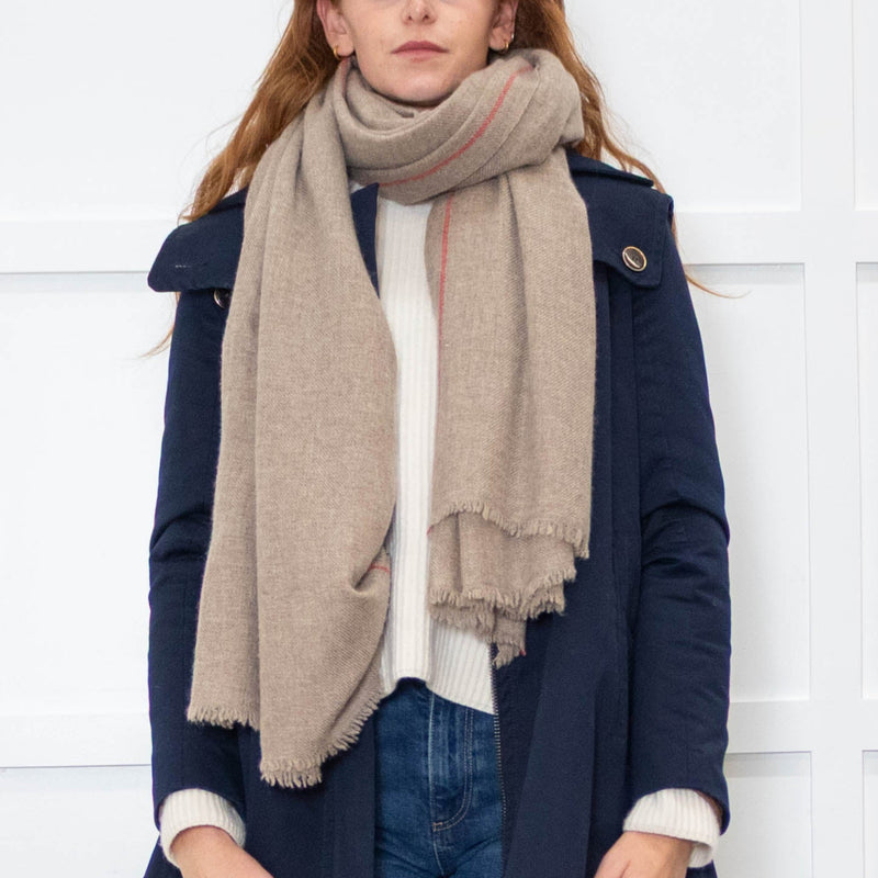 Isabel Marant Brown Cashmere Scarf with Red Trim