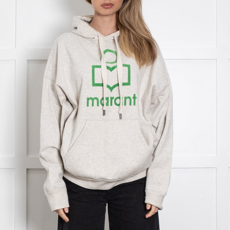 Isabel Marant Grey Hoodie With Green Logo On Front