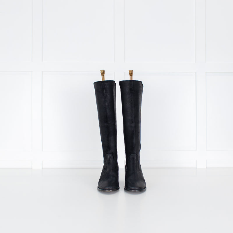 Isabel Marant Black Crushed Velvet Flared Long Sleeve Top