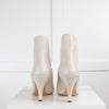 Isabel Marant white leather ankle boots. Feature a pointed toe, front slit opening and matching white leather heels. Heel height 9cm. Accompanied by the original dust bags and box.