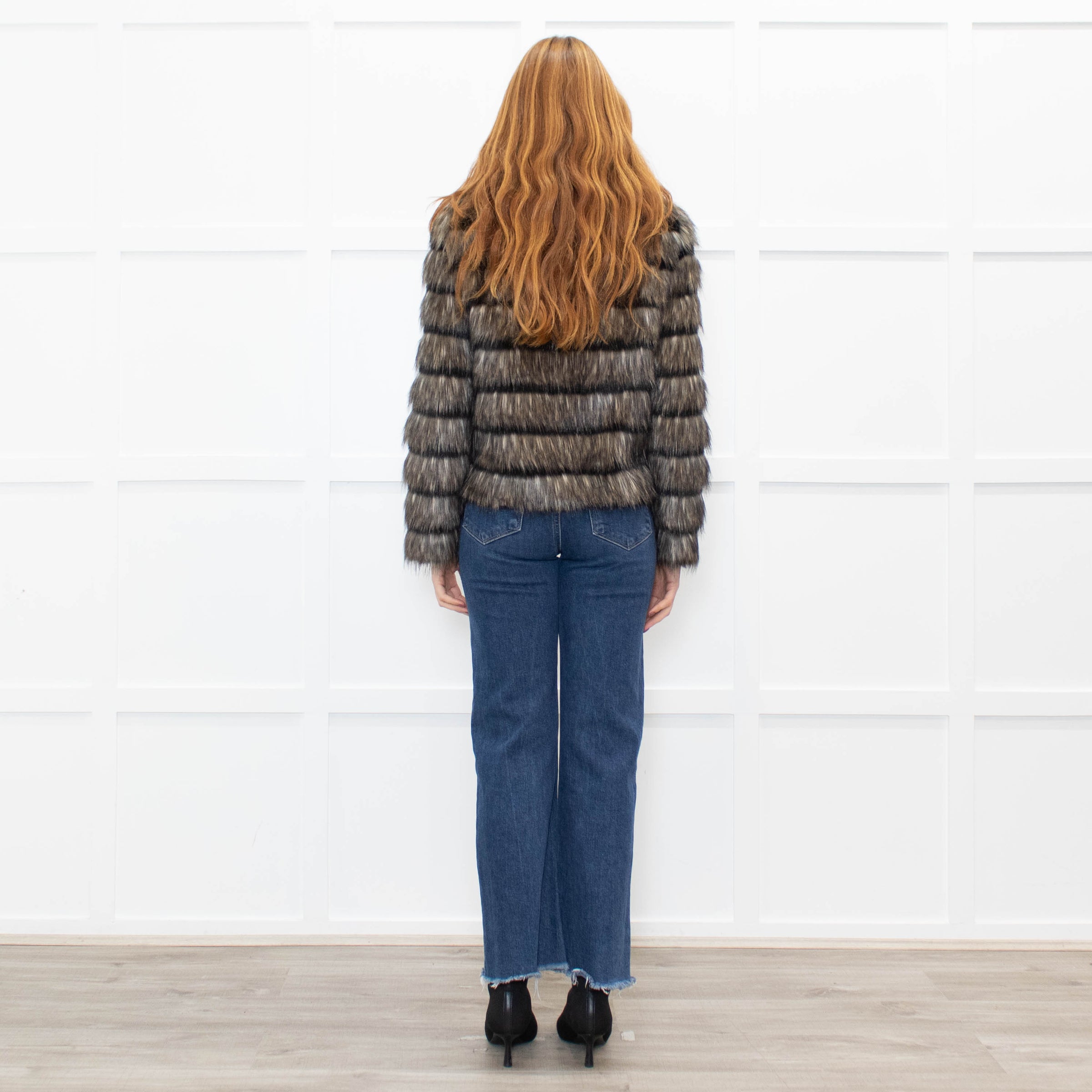 Unreal Fur Black Cream Khaki Faux Fur Jacket