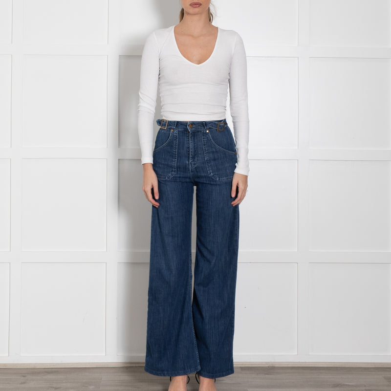 IDA Blue Wide Leg Front Pocket Buckle Jeans