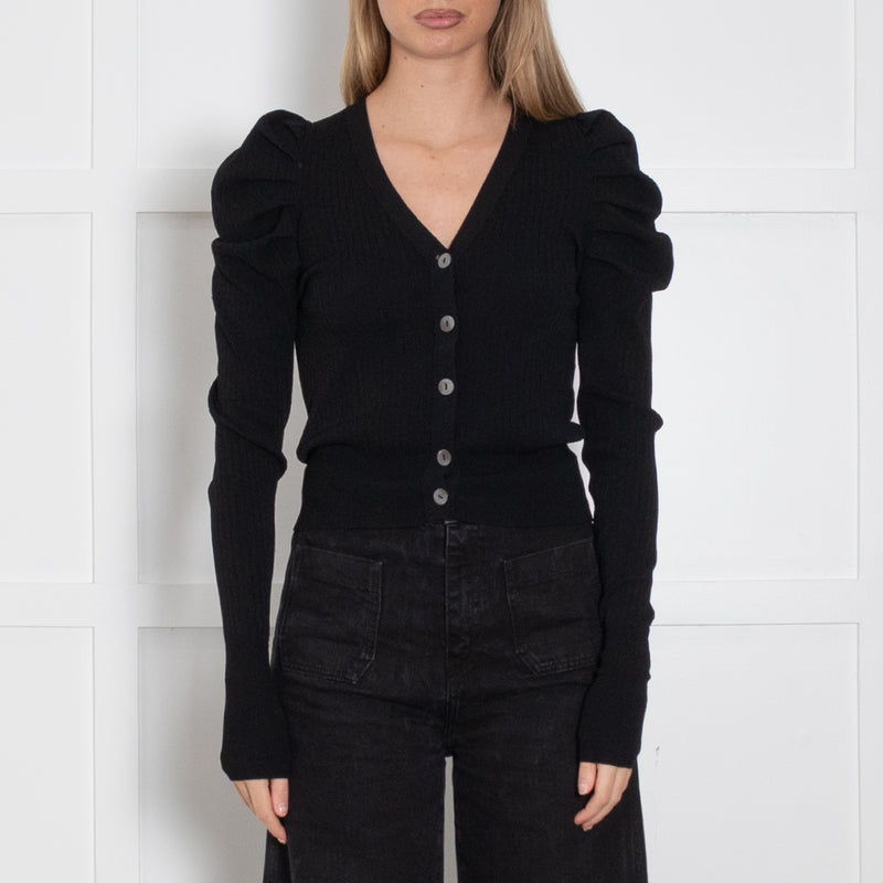 Autumn Cashmere Black Puff Sleeve Short Cardigan