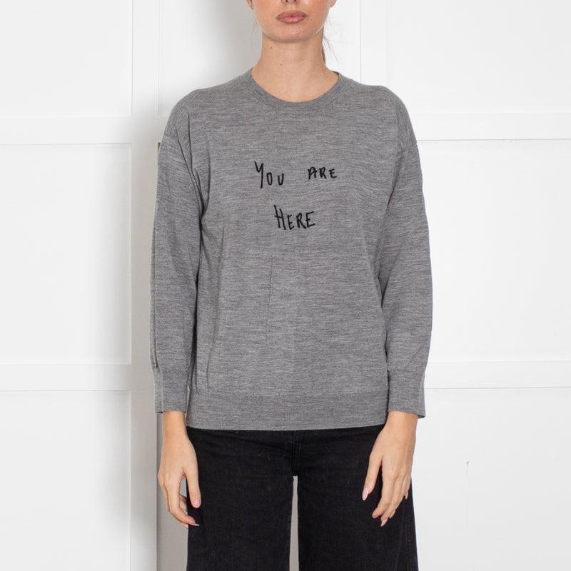 J Crew Grey Wool Jumper With 'You Are Here' Logo