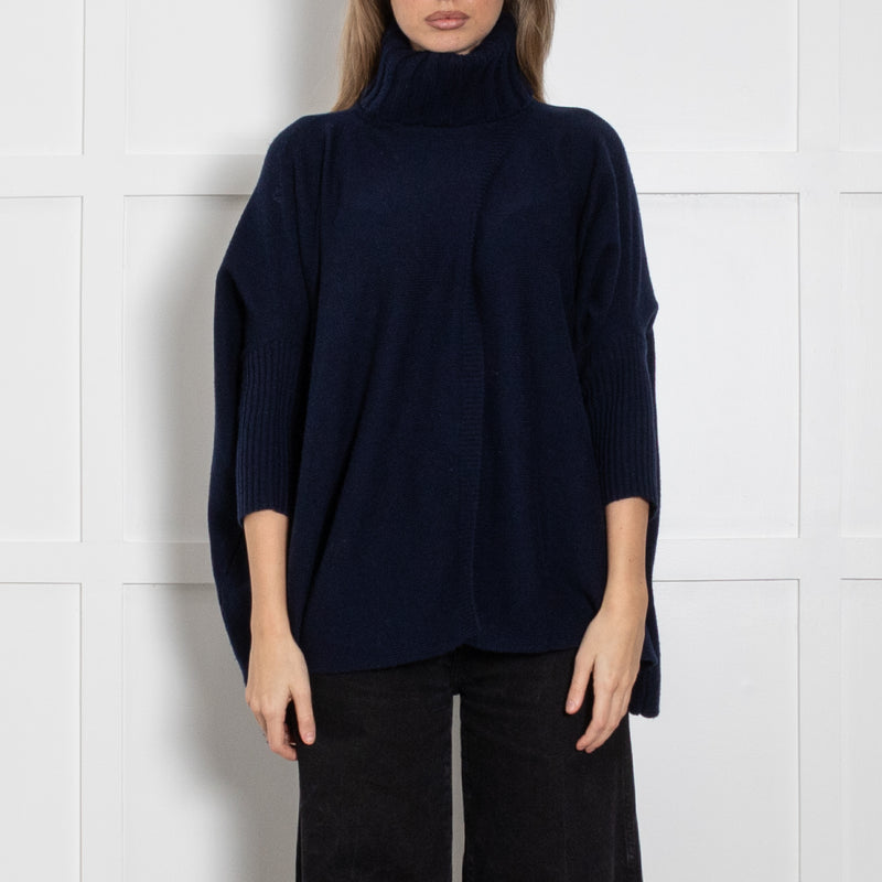 Diane Von Furstenberg Navy Blue Wool Rollneck Cape