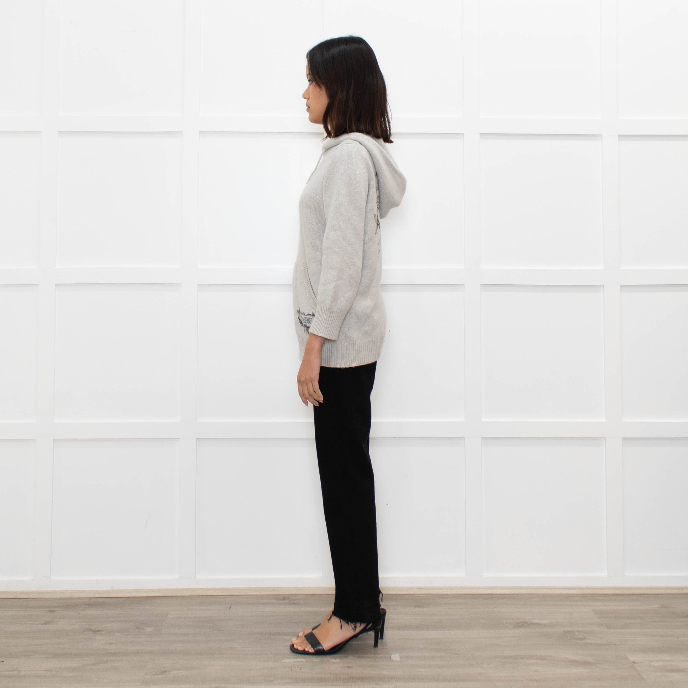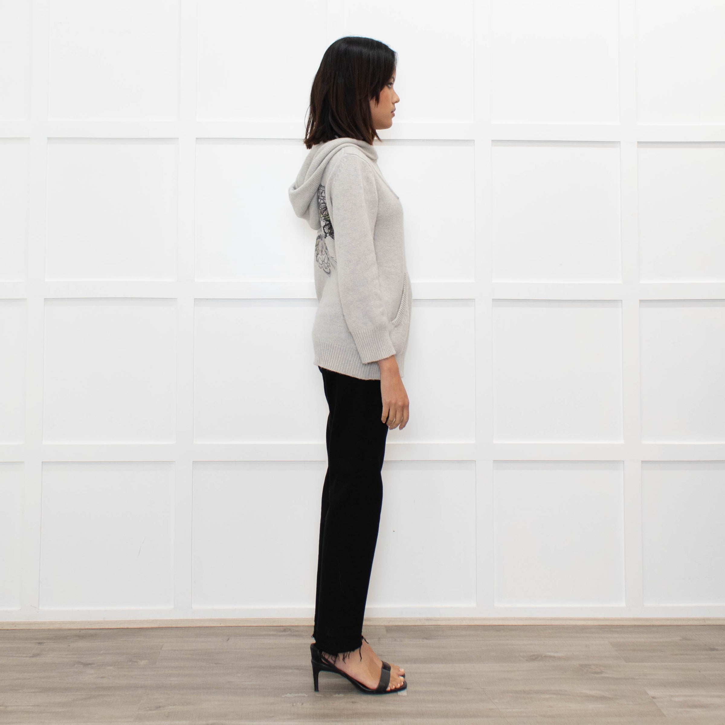 Coach Light Grey Cashmere Hooded Printed Sweater
