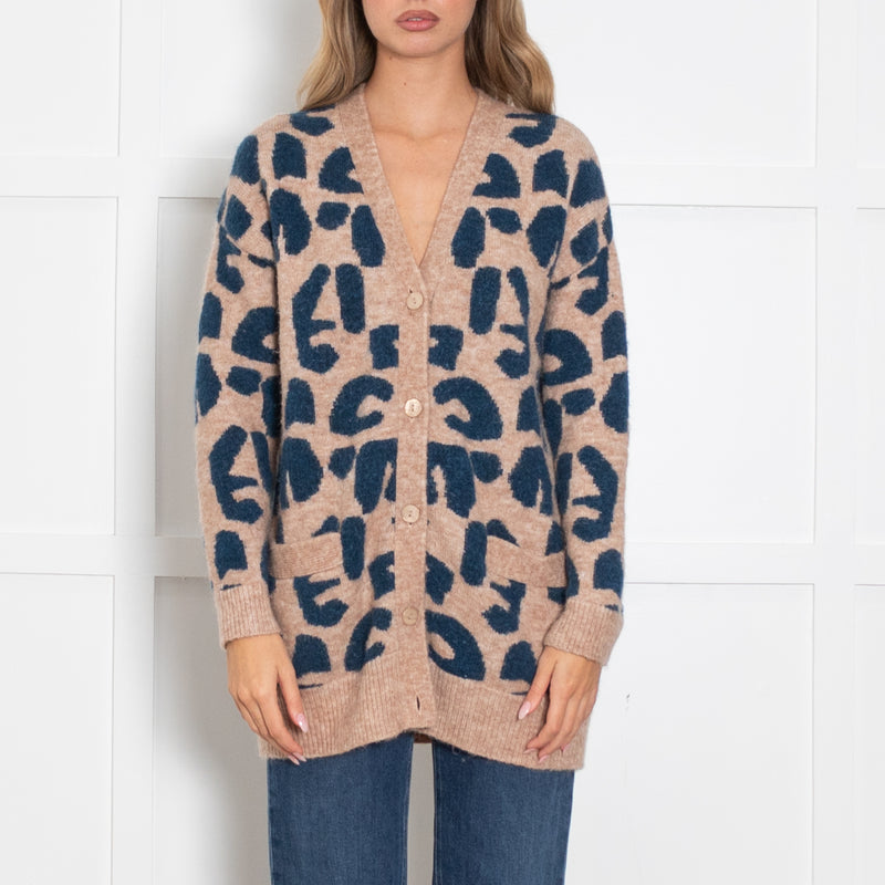 Wyse Neutral Blue Animal Mohair Wool Blend Knit Cardigan