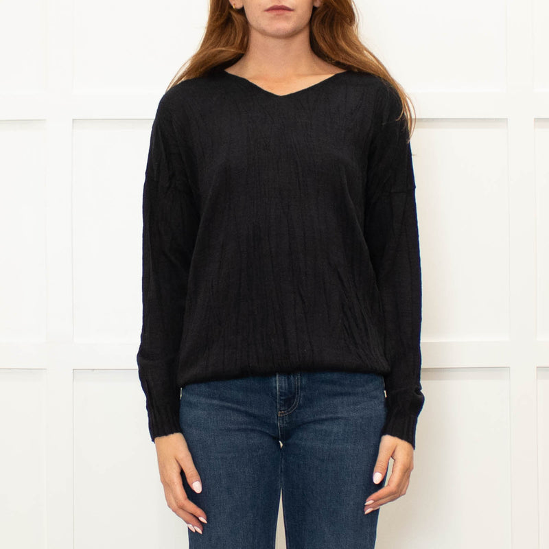 J'M Design Navy Fine Wool Blend Crinkled Sweater
