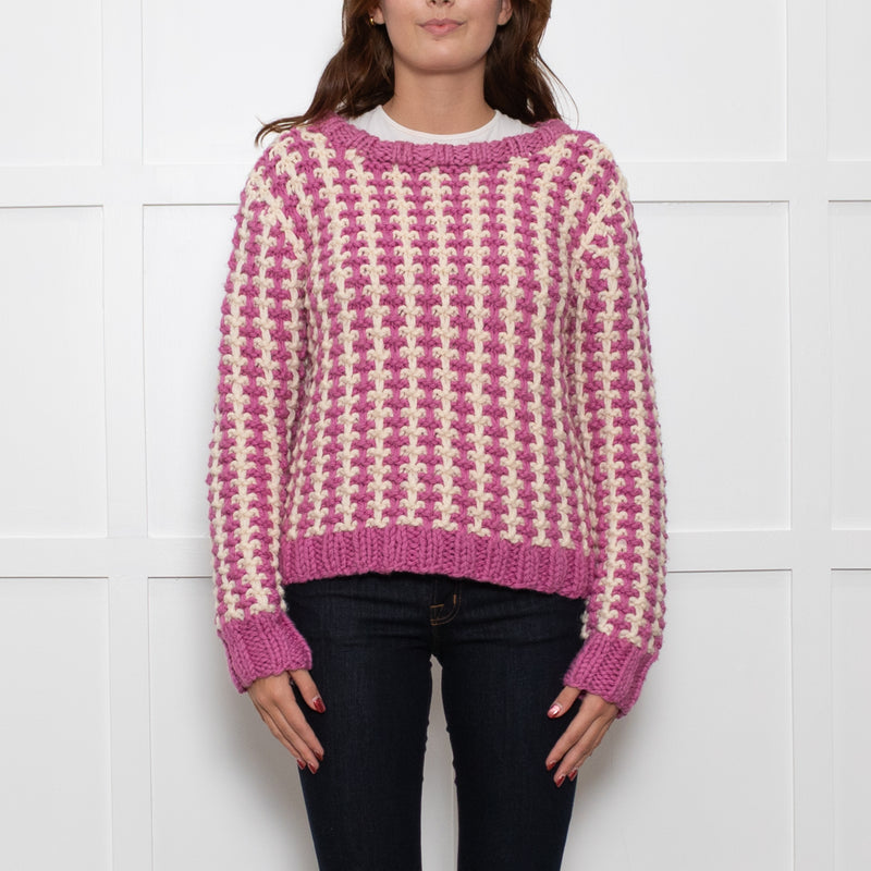 Ridley Cream Purple Chunky Knit Oversized Jumper