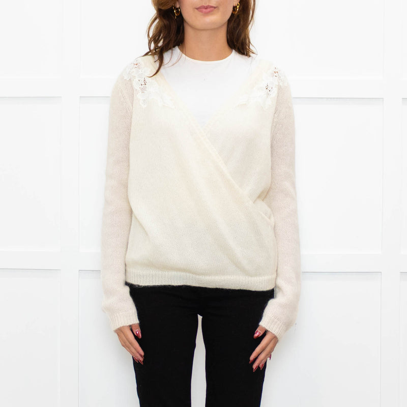 La Maille Sezane Cream White Embroidery Wool Blend Jumper