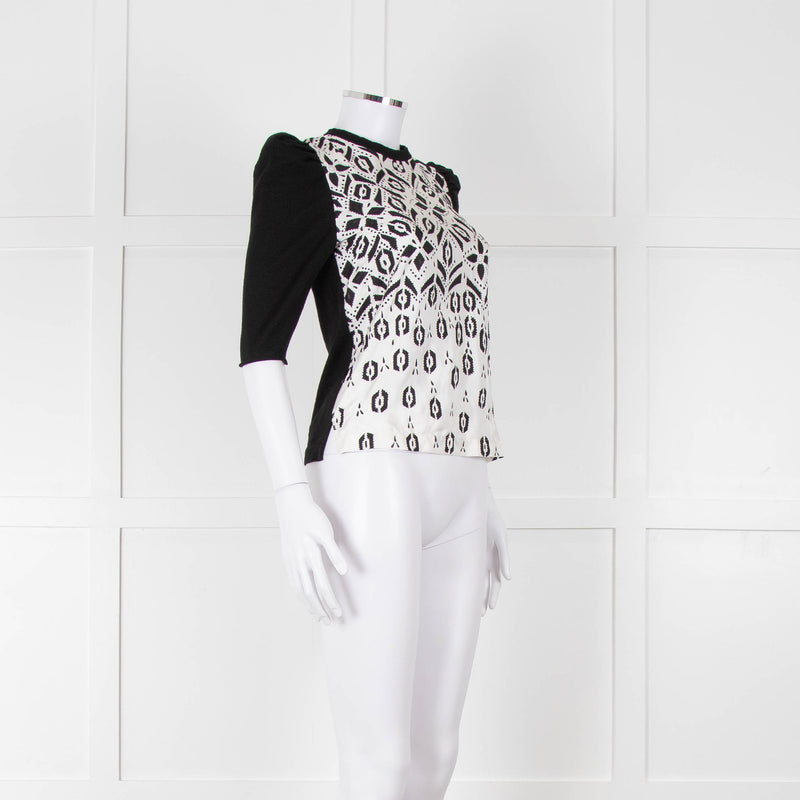 Louis Vuitton Black Knit White Printed Silk Front Top