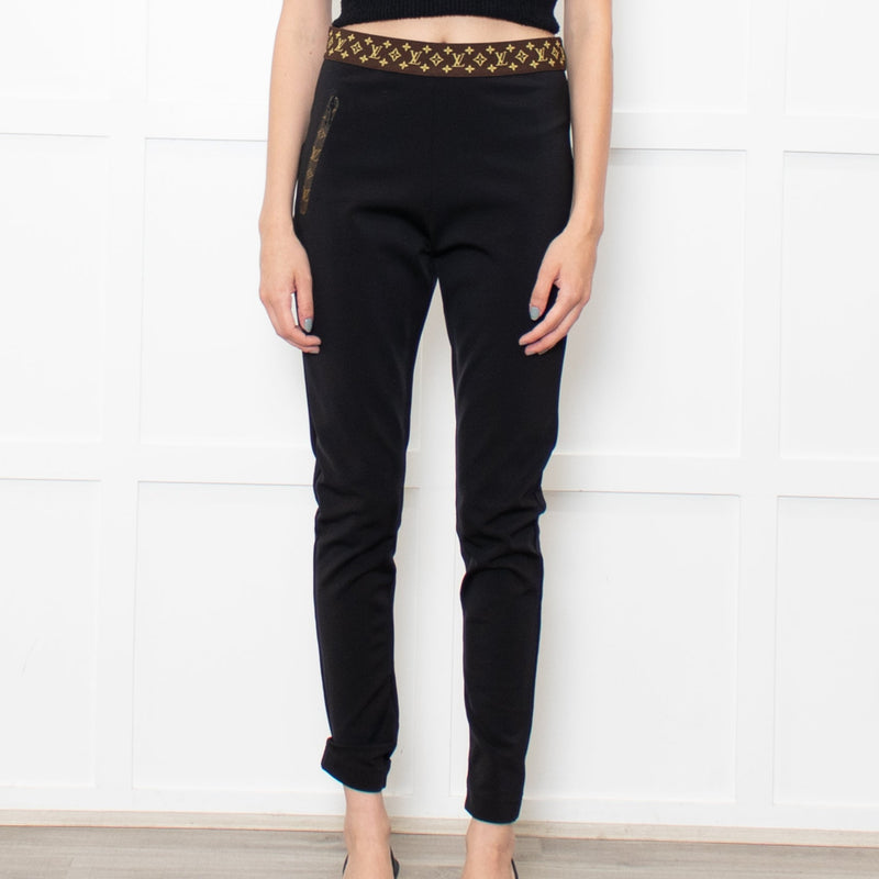 Louis Vuitton Black Brown Elasticated Monogram Waist Leggings